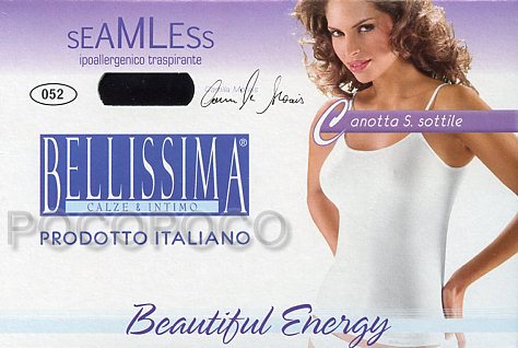 Canotta spalla stretta, da donna, senza cuciture, in microfibra elasticizzata morbida e traspirante, originale e nuova di fabbrica. Colori disponibili: bianco, naturale, blu nero. Taglie disponibili: S/M (42-44), M/L(46-48) e L/XL (50-52). Composizione del prodotto: 92%poliammide e 8%elastan. Marca: “Bellissima”. Codice: 052.