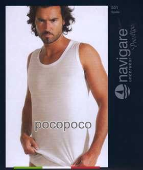 Canottiera spalla larga, da uomo, in cotone filo di scozia, linea Prestige, originale e nuova di fabbrica. Colori disponibili: bianco. Taglie disponibili: 5-L e 7-XXL. Composizione del prodotto: 100%cotone filo di scozia. Marca: “Navigare”. Codice: 551.