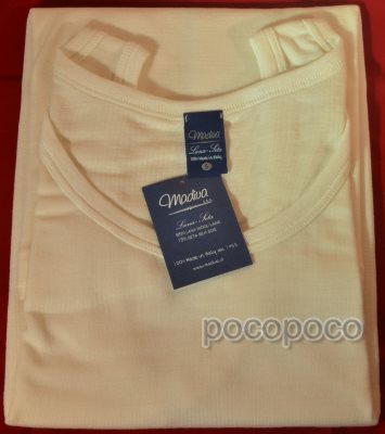Canottiera spalla larga, da uomo, in lana seta, originale e nuova di fabbrica. Colore disponibile: bianco. Taglie disponibili: 4, 5, 6 e 7. Composizione del prodotto: 85%lana e 15%seta. Marca: “Madiva”. Codice: Cagliari.