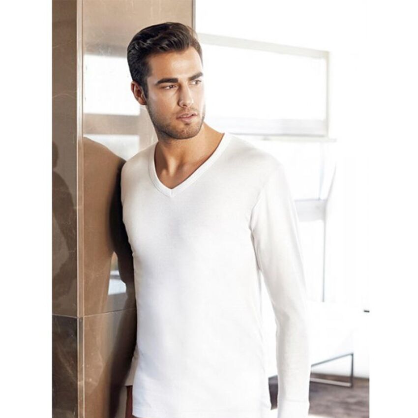Maglia scollo a V, da uomo, manica lunga, in cotone caldo ( interlock). Colori disponibili: bianco, blu, grigio e nero. Taglie disponibili: 3-S, 4-M, 5-L, 6-XL e 7-XXL. Composizione del prodotto: 100% cotone caldo. Marca: “Nottingham”. Codice: Soul.