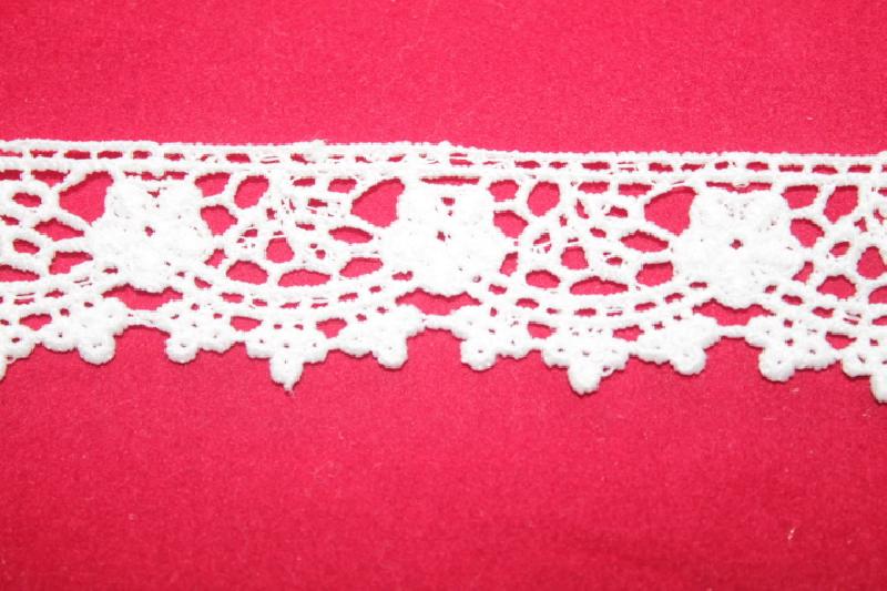 Pizzo marletto macrame, originale e nuovo di fabbrica. Altezza: 2cm circa. Colore disponibile panna. Codice 6248.