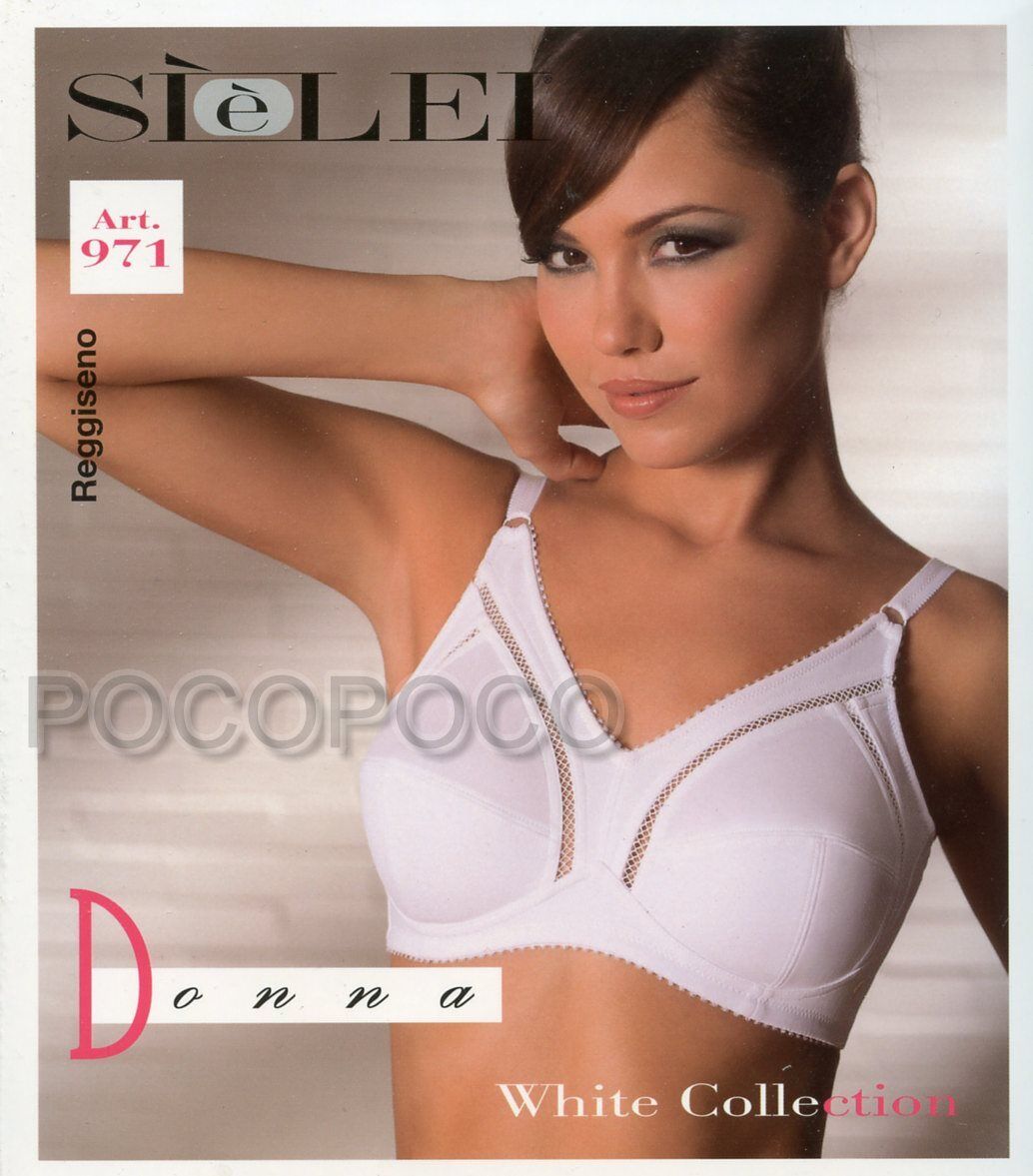 Reggiseno da donna, preformato liscio senza ferretto, coppe non imbottite, stecca laterale, in microfibra, coppa C, originale e nuovo di fabbrica. Colori disponibili: bianco e nero. Taglie disponibili: 3, 4, 5, 6, 7, 8 e 9. Composizione del prodotto: 80%poliammide, 15%elastam e 5%cotone. Marca: “SÌèLEI”. Codice: 971.