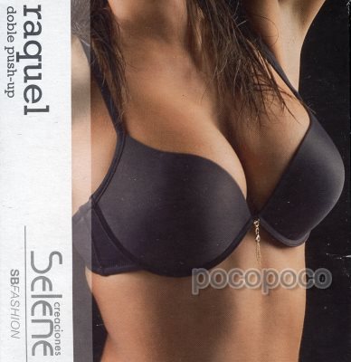 Reggiseno doppio push up con ferretto, realizzato in morbida microfibra liscia, coppe doppiamente imbottite che donano l'effetto di due taglie in più, lo scollo molto profondo rende il deccolletè sexy e intrigante, il centroseno è arricchito da un raffinatissimo pendente a gioiello, coppa B, originale e nuovo di fabbrica. Regalati la sensazione di due taglie in più. Colori disponibili: terra, bianco e nero. Taglie disponibili: 1, 2, 3 e 4. Composizione del prodotto: 48%poliestere, 43%poliammide e 9%elastam. Marca: “Selene”. Codice: Raquel.