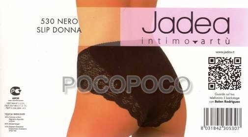 Slip con pizzo,da donna, in cotone modal, originale e nuovo di fabbrica. Colori disponibili: bianco e nero. Taglie disponibili: 3-M, 4-L, 5-XL e 6-XXL. Composizione del prodotto: 45%cotone, 45%modal e 10%elastan. Marca: “Jadea”. Codice: 530.