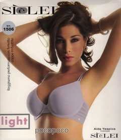 Reggiseno da donna, preformato liscio con ferretto, coppe imbottite, coppa B e coppa C, linea Light, originale e nuovo di fabbrica. Colori disponibili: avena, bianco, blu, nero e noisette. Taglie disponibili: 2, 3, 4 e 6. Composizione del prodotto: 72%poliammide e 28%elastam (banda laterale), 91%poliestere e 9%elastam (imbottitura). Marca: “SÌèLEI”. Codice: 1506.